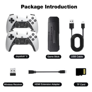 Mit zwei kabellosen 2,4-GHz-Controllern kannst du nostalgische Momente mit Freunden oder Familie erleben – ganz ohne Kabelwirrwarr. Der praktische Plug-and-Play-Stick bietet eine riesige Auswahl an Spielen und bringt das Goldene Zeitalter der Videospiele direkt in dein Wohnzimmer. Hol dir das Gefühl von damals – jetzt in bester Qualität und mit modernster Technik!